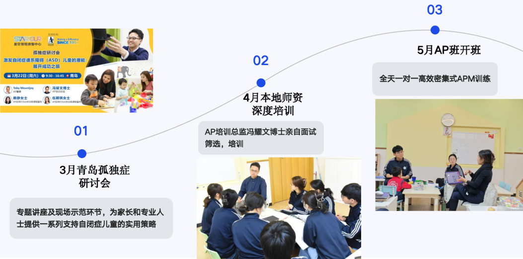 ●2025年3月,在青岛成功举办孤独症研讨会,邀请 AP 培训总监冯耀文博士等专家带来专题讲座与现场示范,为家长和同行分享实用干预策略;