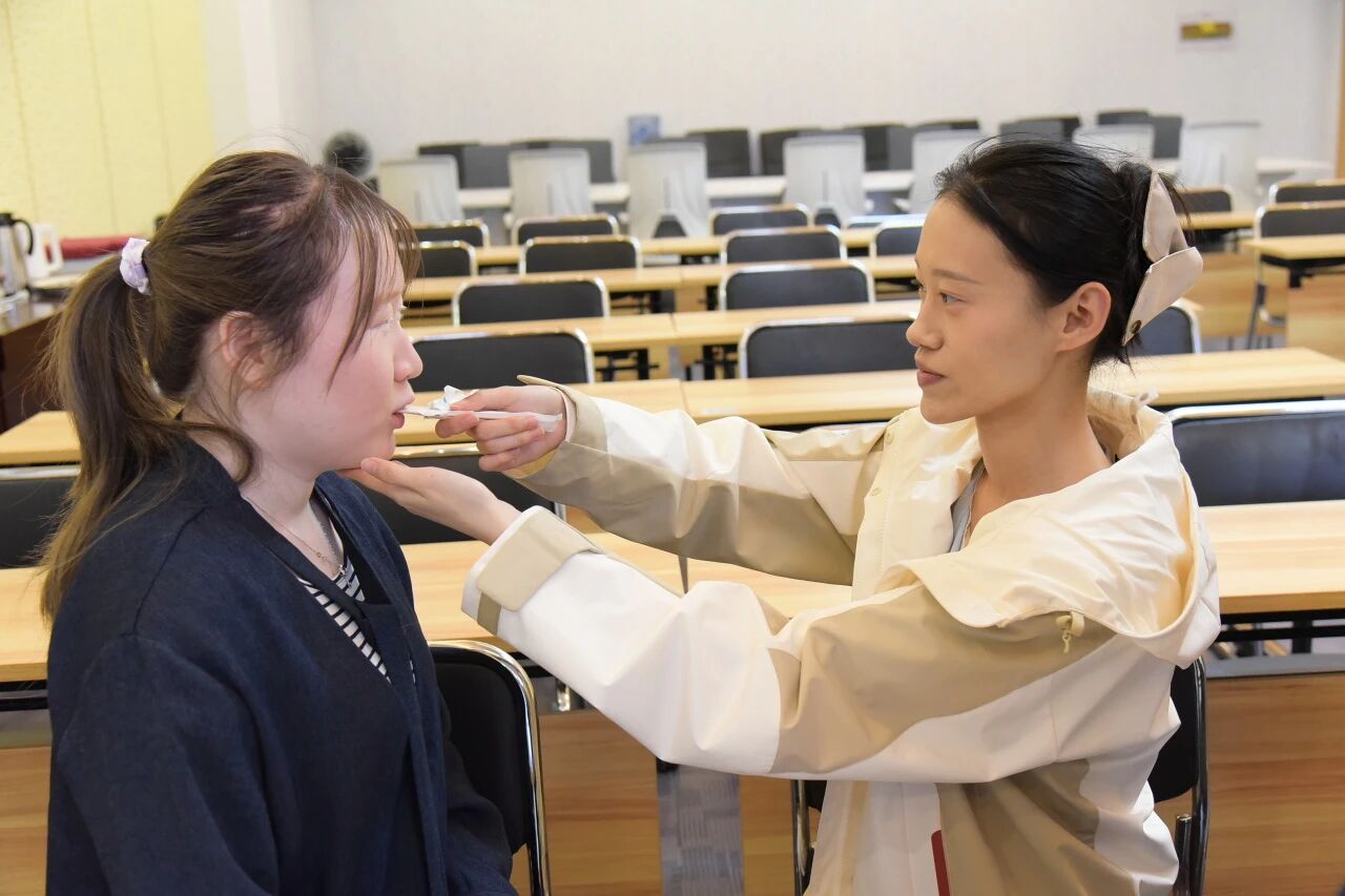 ●口肌工具实操:教师们在普老师的指导下,亲手操作口肌工具,练习针对下颌骨稳定性、唇舌力量与灵活性的辅助手法,将线上理论转化为肌肉记忆。